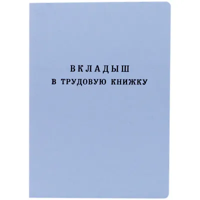 Бланк-вкладыш в трудовую книжку установленного образца с уникальным семизначным номером. Бланк вкладыша имеет соответствующую степень защиты. Упакован в пленку.