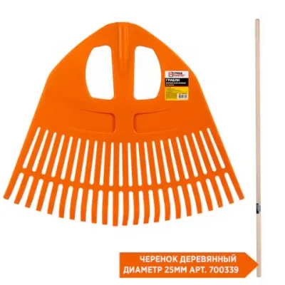Грабли веерные пластиковые 23 зуба "ПАВЛИН", ширина 50х42 см, БЕЗ ЧЕРЕНКА, тулейка 25 мм, ГРАНДМАСТЕР, 700350