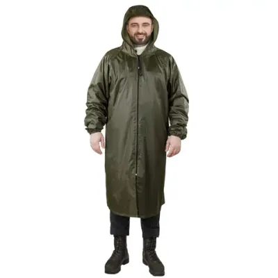 Многоразовый плащ-дождевик цвета хаки на молнии с ПВХ-покрытием ГРАНДМАСТЕР предназначен для защиты от ветра, дождя и других атмосферных воздействий. Идеально подойдет для работы на улице, отдыха на природе, рыбалки, пикника и городских прогулок.