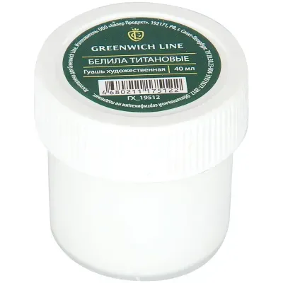 - Гуашь художественная Greenwich Line, белая титановая, 40мл — это продукция бренда Greenwich Line. В нашем магазине представлен широкий ассортимент товаров Greenwich Line.