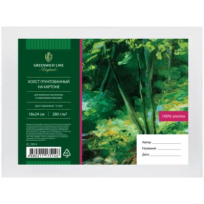 - Холст на картоне Greenwich Line, 18*24см, 100% хлопок, 280г/м2, мелкое зерно — это продукция бренда Greenwich Line. В нашем магазине представлен широкий ассортимент товаров Greenwich Line.