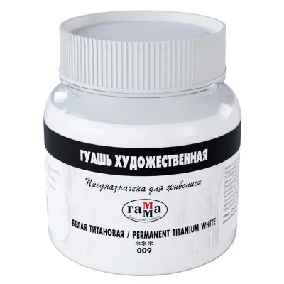 - Основные характеристики Гуашь художественная 1 шт., ГАММА, 220 мл, белила титановые, 0.20.В220.009: Цвет: Белила титановые, Количество цветов: 1, Набор: Нет, Назначение: Художественные. Полный список характеристик доступен на странице товара.