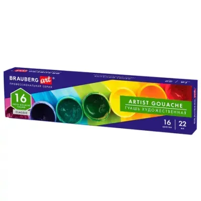 - Гуашь художественная BRAUBERG ART CLASSIC, НАБОР 16 цветов в баночках по 22 мл, 191584 — это продукция бренда BRAUBERG ART. В нашем магазине представлен широкий ассортимент товаров BRAUBERG ART.