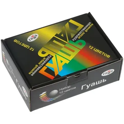 - Какие характеристики у Гуашь художественная ГАММА "Модерн", 12 цветов по 40 мл, картонная упаковка, 221004?