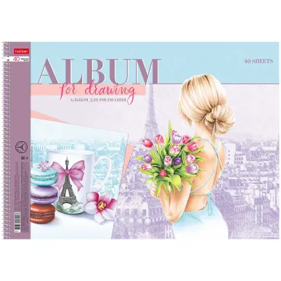 Альбом А3 формата, на спирали. Внутренний блок - 40 листов, офсетная бумага 100 г/м2. Жесткая подложка позволит делать зарисовки на весу. Обложка изготовлена из высококачественного мелованного картона. Альбом подходит для рисования карандашами, фломастерами, красками