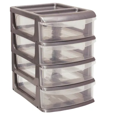 Бокс универсальный Idea средний, 4 отделения, прозрачные лотки, металлик