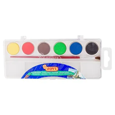 - Акварель JOVI, 06 цветов, малые кюветы, с кистью, с палитрой, пластик, европодвес — это продукция бренда JOVI. В нашем магазине представлен широкий ассортимент товаров JOVI.