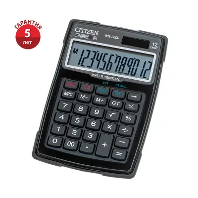 - Калькулятор водонепроницаемый Citizen WR-3000, 12 разрядов, двойное питание, 106*152*38мм, черный — это продукция бренда Citizen. В нашем магазине представлен широкий ассортимент товаров Citizen.