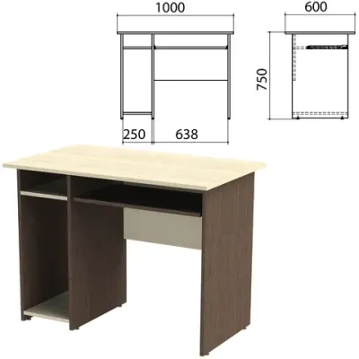 Стол компьютерный "Канц", 1000х600х750 мм, с тумбой, цвет дуб молочный/венге (КОМПЛЕКТ)