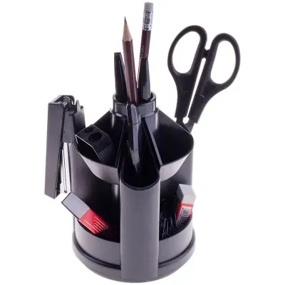 Настольный набор на вращающейся подставке позволяет эффективно организовать рабочее место. Изготовлен из экологически чистых материалов.