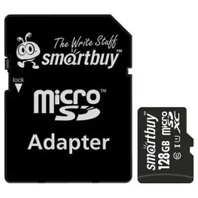 - Карта памяти micro SDXC, 128 GB, SMARTBUY, UHS-1 U1, 80 Мб/сек. (class 10), с адаптером, SB128GBSDCL1001 — это продукция бренда SMARTBUY. В нашем магазине представлен широкий ассортимент товаров SMARTBUY.