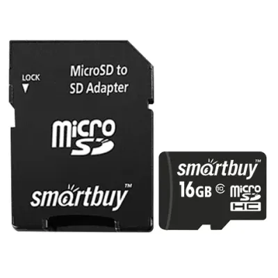 - Карта памяти microSDHC, 16 GB, SMARTBUY, 10 Мб/сек. (class 10), с адаптером, SB16GBSDCL10-01 — это продукция бренда SMARTBUY. В нашем магазине представлен широкий ассортимент товаров SMARTBUY.