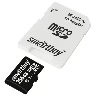 - Цена на Карта памяти microSDXC 256 GB SMARTBUY, UHS-I, 90 Мб/сек (class 10), с адаптером, SB256GBSDCL10-01 составляет 3 146,5 рублей. При оптовом заказе цена от 3 054,27 рублей.