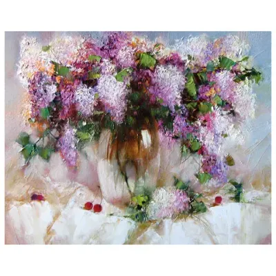 - Картина по номерам 40х50 см ОСТРОВ СОКРОВИЩ "Натюрморт с сиренью и черешней" на подрамнике, акрил, кисти, 662912 — какой бренд?