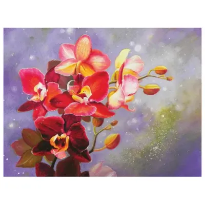 Картина стразами "Орхидея" представляет собой эксклюзивный сюжет по картине российского художника Неприятель Ю. А. и включает в себя: - свёрнутый холст размером 36х46 см; - набор квадратных страз разных цветов, пронумерованных в соответствии со схемой; - набор удобных закрывающихся пакетиков; - металлический пинцет; - пластиковый карандаш-стилус для захвата страз; - клеевая подушечка; - пластиковый контейнер; - схема соответствия цветов страз и символов на холсте. Размер готовой картины составл