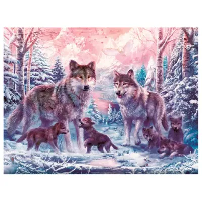 Картина стразами "Волки" включает в себя: - холст, натянутый на деревянный подрамник; - набор квадратных страз разных цветов, пронумерованных в соответствии со схемой; - набор удобных закрывающихся пакетиков; - металлический пинцет; - пластиковый карандаш-стилус для захвата страз; - клеевая подушечка; - пластиковый контейнер; - схема соответствия цветов страз и символов на холсте. Размер готовой картины составляет 30х40 см. Картина полностью заполняется квадратными акриловыми стразами, благодар