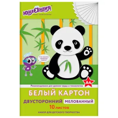 - Картон белый А4 МЕЛОВАННЫЙ (белый оборот), 10 листов, в папке, ЮНЛАНДИЯ, 200х290 мм, "ПАНДА", 111311 — это продукция бренда ЮНЛАНДИЯ. В нашем магазине представлен широкий ассортимент товаров ЮНЛАНДИЯ.