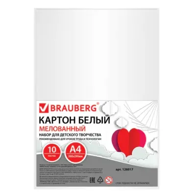 - Картон белый А4 МЕЛОВАННЫЙ (белый оборот), 10 листов, BRAUBERG, 200х290 мм, 128017 — это продукция бренда BRAUBERG. В нашем магазине представлен широкий ассортимент товаров BRAUBERG.