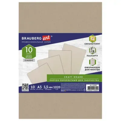 - Картон переплетный, толщина 1,5 мм, А3 (297х420 мм), КОМПЛЕКТ 10 шт., BRAUBERG ART, 115337 — какой бренд?