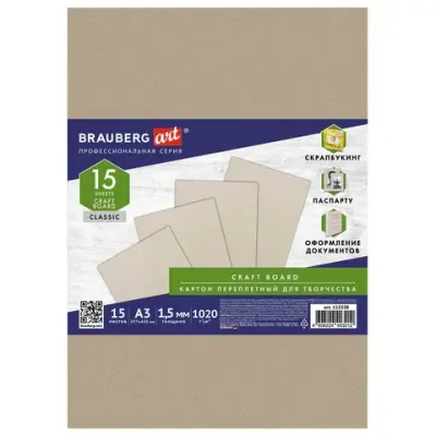 - Картон переплетный, толщина 1,5 мм, А3 (297х420 мм), КОМПЛЕКТ 15 шт., BRAUBERG ART, 115338 — какой бренд?