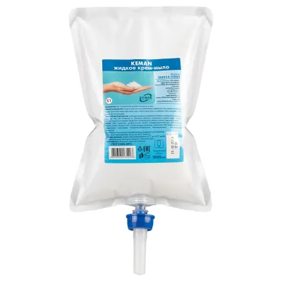 Картридж с жидким крем-мылом одноразовый (Система S1) "Перламутровое", белое, 1 л, KEMAN, 100024-S1000