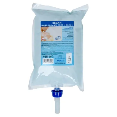 Картридж с жидким мылом-гелем для тела и волос одноразовый (Система S1), 1 л, KEMAN, 100026-1000