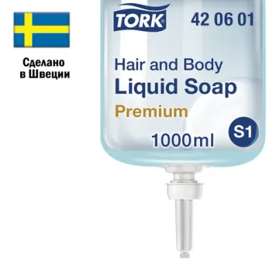 Картридж с жидким мылом-гелем для тела и волос одноразовый TORK (Система S1) Premium, 1 л, 421601, 420601