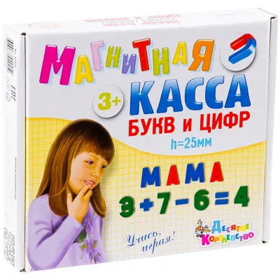 - Основные характеристики Касса букв и цифр магнитная, Десятое королевство, 79 эл., высота 25мм, картонная упаковка: Материал: Пластик, Тип: Касса букв и цифр, Возраст: От 3 лет, Количество элементов: 79. Полный список характеристик доступен на странице товара.