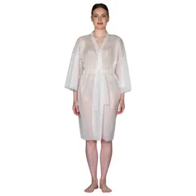 Одноразовые халаты с рукавами из трехслойного нетканого материала спанбонд/мельтблаун/спанбонд обеспечивают индивидуальную гигиену и комфорт, прекрасно подходят для использования в косметологии. Халаты фасона «Кимоно» с поясом и рукавами производятся в универсальном размере, поэтому подходят и для мужчин, и для женщин. Халат защищает тело от попадания медикаментов, брызг биологических жидкостей, косметических средств, грязи, пыли и патогенных бактерий. Для проведения процедур халаты надеваются