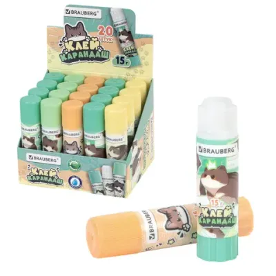 Клей-карандаш 15 г, кросс-серия "МИЛЫЕ КОТЫ", ассорти, BRAUBERG, 273228