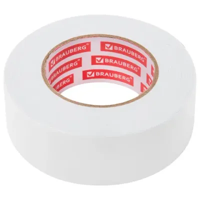 Двухсторонняя клейкая лента BRAUBERG на основе вспененного полиэтилена применяется во время мотажных работ внутри помещений, при строительных, и автомобильных работах.