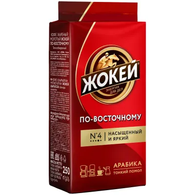 - Основные характеристики Кофе молотый ЖОКЕЙ "По-восточному" 250 г, 0270-26: Тип: натуральный, Серия: ЖОКЕЙ, Тип упаковки: пакет, Масса нетто: 250. Полный список характеристик доступен на странице товара.