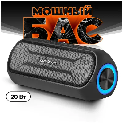 Компактная беспроводная колонка отлично подойдет для пользователей, которые ведут активный образ жизни. Благодаря своим небольшим размерам, ее легко можно носить в своем рюкзаке. Корпус выполнен из пластика. Дизайн устройства сумеет привлечь внимание большинство любителей музыки. Defender S1000 получил под свое управление аккумулятор мощностью 2000 мАч. Полной зарядки хватает приблизительно на 4 часа работы. Для подключения к мобильному устройству используется интерфейс Bluetooth 4.2, либо 3.5 м