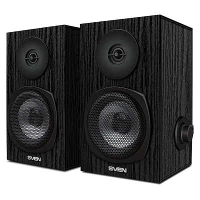 Двухполосная акустическая система 2.0 SVEN SPS-575 выполнена в классическом дизайне. Благодаря встроенному ВЧ-излучателю она детально и реалистично воспроизводит высокие частоты. Корпус модели выполнен из дерева, что также положительно сказывается на качестве звучания. Сбоку на правой колонке расположен регулятор громкости. Модель подключается к ПК и ноутбуку через USB-порт и может питаться от сети через 5 V DC-адаптер. Вся информация на сайте о товарах носит справочный характер и не является п