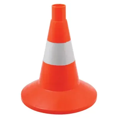 Используется во время обучения вождению в автошколах, в качестве знака аварийной остановки при поломке автомобиля на трассе. Высота дорожного конуса – 320 мм. Конус с круглым основанием имеет отверстие в верхней части диаметром 40 мм, предназначенное для установки пластиковой вехи или дорожного фонаря. Изготовлен из упругого пластика, не ломается при наезде автомобиля.