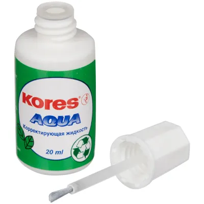 - Корректирующая жидкость Kores "Aqua", 20мл, на водной основе, с кистью — это продукция бренда Kores. В нашем магазине представлен широкий ассортимент товаров Kores.