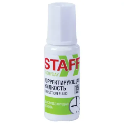 - Корректирующая жидкость STAFF "Everyday" быстросохнущая, 15 мл, с кисточкой, 229398 — это продукция бренда STAFF. В нашем магазине представлен широкий ассортимент товаров STAFF.