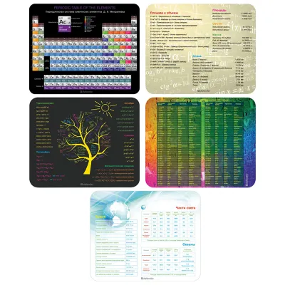 Математические формулы, неправильные глаголы, меры объема и веса и множество других "шпаргалок" по разным предметам всегда будут под рукой. Позволяют коврикам долго сохранять свой внешний вид. Позволяет многократно фиксировать коврик в любом удобном месте рабочей поверхности.