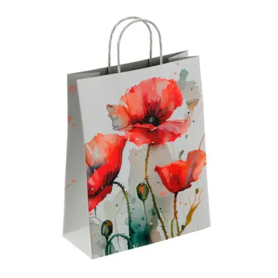 Крафт-пакет бумажный "Маки" 22х12х25 см, с кручеными ручками, плотность 100 г/м2, белый, 114171