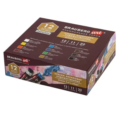 - Краски акриловые художественные BRAUBERG ART PREMIERE, НАБОР 12 шт., в тубах по 22 мл, 191781 — это продукция бренда BRAUBERG ART. В нашем магазине представлен широкий ассортимент товаров BRAUBERG ART.