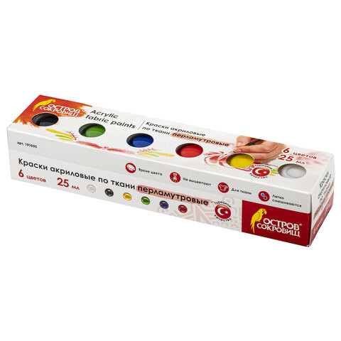 Краски акриловые по ткани ПЕРЛАМУТРОВЫЕ ОСТРОВ СОКРОВИЩ 6 цветов по 25 мл, 191695 по низкой цене оптом