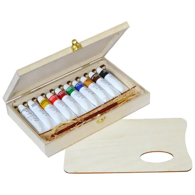 Краски масляные Гамма "Студия", 10 цветов, туба 18мл, с кистью, в деревянном коробе
