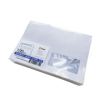 - Цена на Конверт C5, KurtStrip, 162*229мм, б/подсказа, с прав. окном, отр.лента, внутр. запеч., термоусадка составляет 2,24 рублей. При оптовом заказе цена от 1,9 рублей.