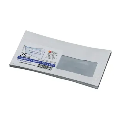- Конверт E65, KurtStrip, 110*220мм, б/подсказа, с прав.окном, отр. лента, внутр. запечатка, термоусад — это продукция бренда Курт. В нашем магазине представлен широкий ассортимент товаров Курт.