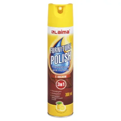 - Полироль для мебели с воском и антистатиком 3 в 1, аэрозоль, 300 мл, LAIMA (Аналог PRONTO/ПРОНТО), ТУРЦИЯ, 608503 — это продукция бренда LAIMA. В нашем магазине представлен широкий ассортимент товаров LAIMA.