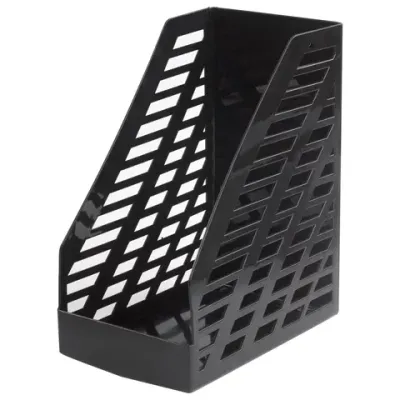 Выполнен в черном цвете, с одним отделением предназначен для хранения каталогов и папок. Представляет собой прочную устойчивую неразборную конструкцию с цельнолитыми сетчатыми боковыми стенками. Размеры: высота - 300 мм, ширина - 160 мм, глубина - 250 мм.