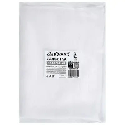 - Салфетки ВАФЕЛЬНЫЕ отбеленные, 45х60 см, плотность 140(±10) г/м2, КОМПЛЕКТ 10 шт., ЛЮБАША, 606634 — это продукция бренда ЛЮБАША. В нашем магазине представлен широкий ассортимент товаров ЛЮБАША.