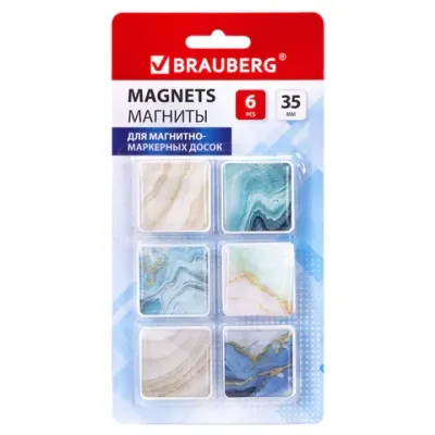 Магниты квадратные стеклянные 35 мм для досок магнитно-маркерных, НАБОР 6 шт., "Мрамор", BRAUBERG Glass, блистер, 272512