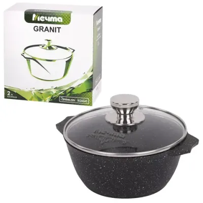 Кастрюля 2 л с жаропрочной крышкой 20 см, антипригарное покрытие, МЕЧТА "Гранит Black", 42802