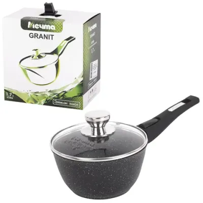 Ковш 1,7 л, съемная soft-touch ручка, жаропрочная стеклянная крышка, антипригарное покрытие, МЕЧТА "Гранит Black", 082802